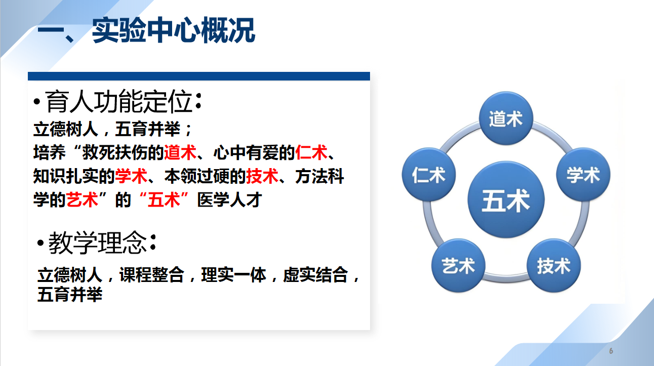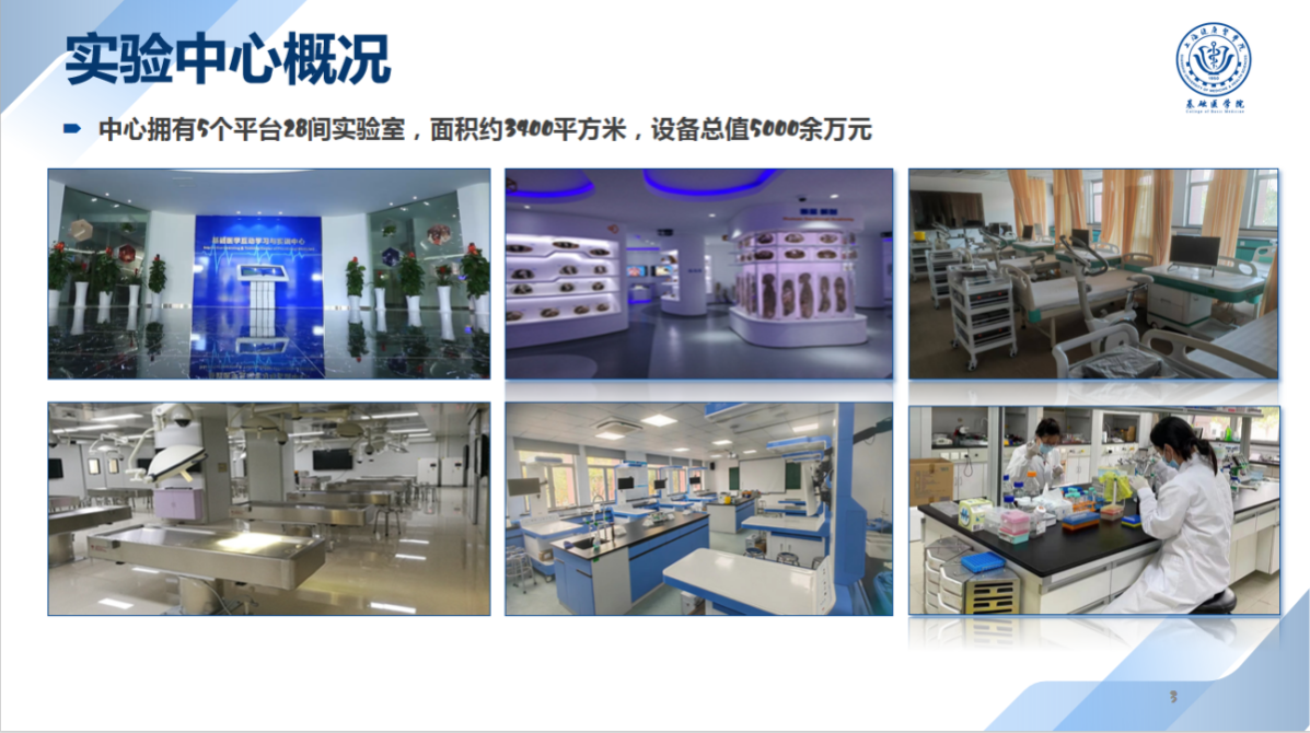 上海市基础医学实验教学中心拥有5个平台28间实验室,面积约3400㎡,设备总值5000余万元。中心秉承“立德树人,课程整合,理实一体,虚实结合,五育并举”的教学理念。先后获得市级和国家级虚拟仿真实验教学项目。中心每年承担19个本科专业约5000学生的约300000人时数的基础医学实验教学。中心教师指导大学生创新创业项目300余项,解明佳、崔宗辉等获得第七届中国国际“互联网+”大学生创新创业大赛全国铜奖,第八届中国国际“互联网+”大学生创新创业大赛上海市银奖等诸多国家和上海市奖项。中心还先后指导学生发表学术论文52篇,授权专利17项。