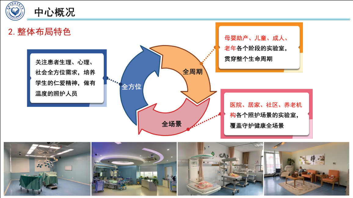 上海市护理实验教学示范中心位于学校北苑9号楼仁心楼,总面积约8000㎡。中心建有母婴助产、儿童、成人、老年贯穿全生命周期各个阶段的实验室,关注患者生理、心理、社会全方位需求,覆盖医院、居家、社区、养老机构等各个照护场景,通过早实践、多实践、反复实践,培养具有仁爱精神的“六会”护理人才。中心连续获批第45届、46届、47届世界技能大赛健康和社会照护国家集训主基地(人社部认定)。中心教师指导学生代表中国队参加世界技能大赛-健康与社会照护项目,先后获铜牌2次。指导学生参加创新创业大赛,平均每年获得省部级及以上奖项近20项,其中国家级二等奖2次、三等奖2次。