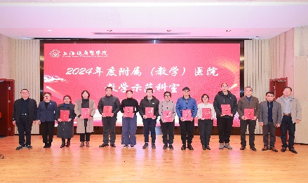 医教协同、共筑未来。2024年,学校以高等教育综合改革“一个《意见》+十大专项计划”为指导,坚持把拔尖创新人才和急需紧缺人才培养作为战略使命,积极探索“政产学研医用”六协同教学平台建设,出台相关管理办法,教务处与产学合作处联手协同,着力培育智能医疗器械、眼健康、数智检验检测、生物医药技术、康复医学等现代产业学院立项建设。产教融合、医教协同,也离不开临床教学的支持和帮助,学校以教学示范科室、优秀实习带教教师为示范引领,着力推动附属医院、教学医院见实习质量不断提升。在医教协同环节,与会领导们为5个现代产业学院授牌,并为附属周浦医院普通外科等10个校级教学示范科室以及来自于临床教学一线的13位优秀实习带教教师颁发荣誉证书。