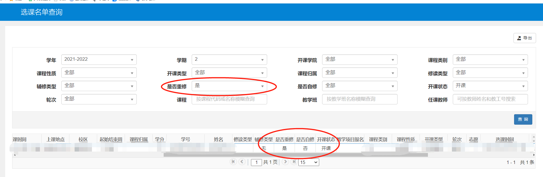 (一)重修课程查询和选课资格查询
