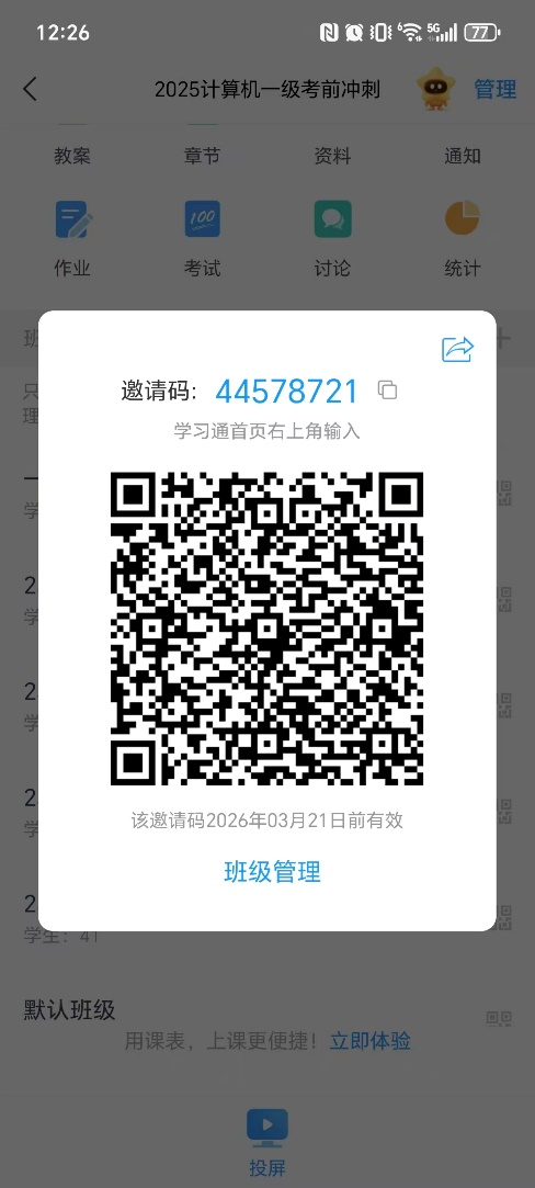 1、已经报名一级考试未加入学习通“25计算机一级考前冲刺”的考生请扫码加入课程,综合测试1~4为去年考试真题,请大家按照说明进行练习。