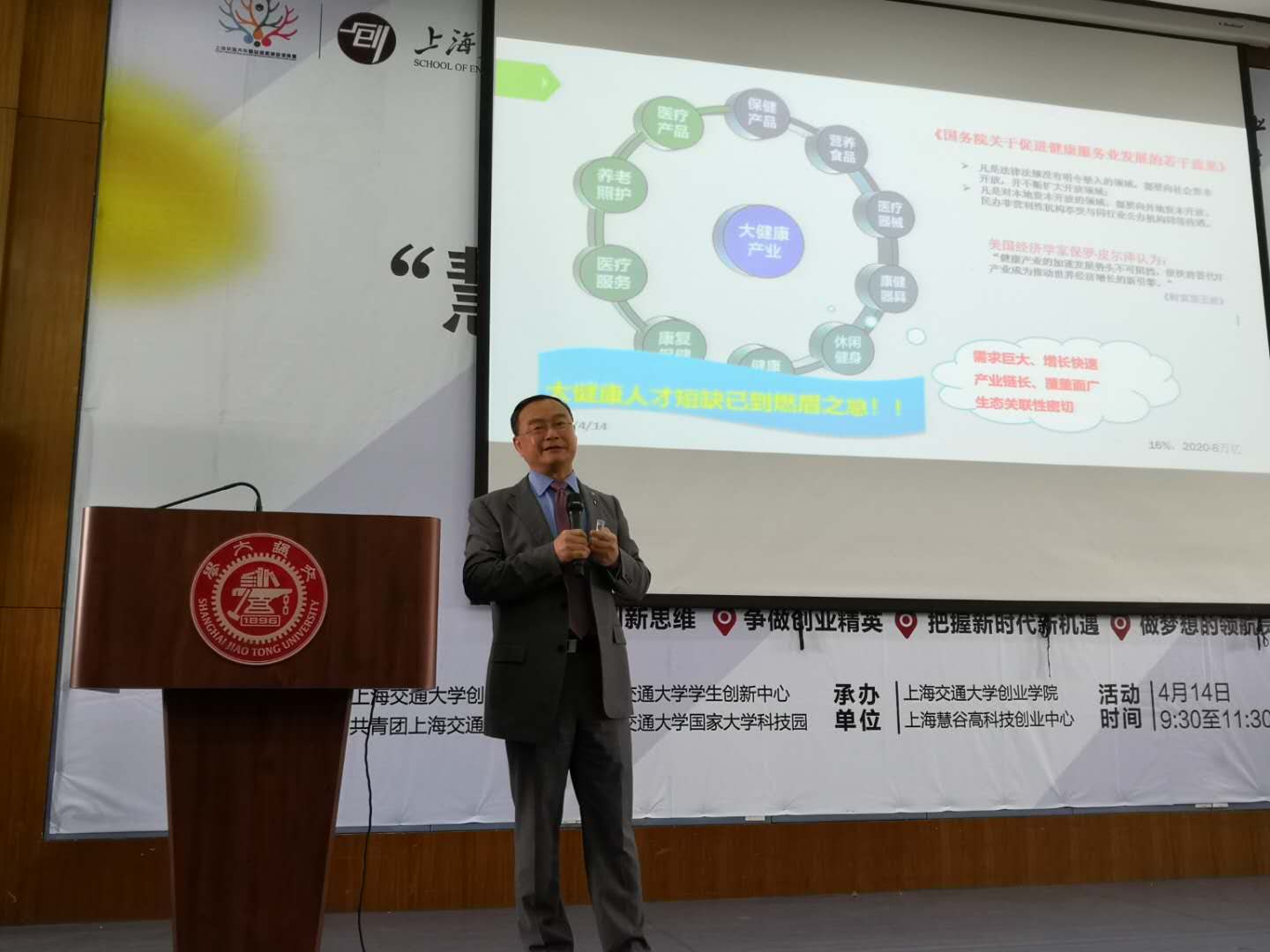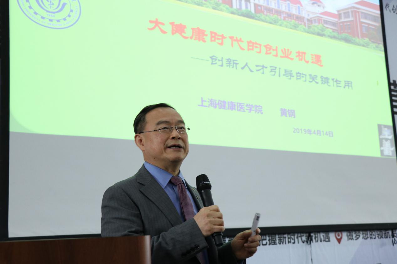 4月14日,由上海交通大学创业学院、共青团上海交大委员会、上海交通大学国家科技园、安泰经济与管理学院、学生创新中心主办的2019年上海交通大学“慧谷”创新创业训练营正式开营。受上海交通大学创业学院邀请,经过前期报名,我校共有55名师生参加了该训练营。在开营仪式上,我校黄钢校长受邀作了题为《大健康的创业机遇——创新人才引导的关键作用》的精彩报告。上海交通大学党委常委、宣传部长胡昊,创业学院常务副院长赵旭,学生创新中心主任陈江平,上海交通大学国家大学科技园有限公司副总经理、创业学院副院长杜松宁出席了开营仪式。