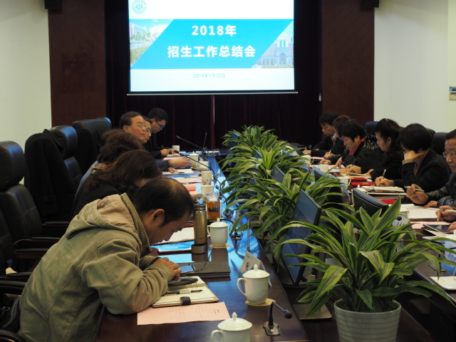 会议首先由教务处招生办公室陆文华副主任作学校2018年招生工作总结。他对学校2018年的生源质量和学院招生工作情况做了分析,并汇报了学校2019年的招生工作策略。