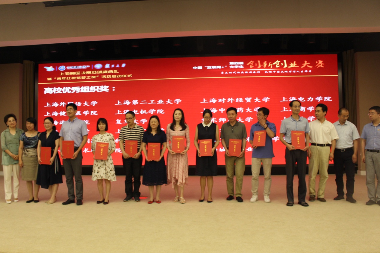 7月11日,由上海市教育委员会、上海市人力资源和社会保障局、上海市经济和信息化委员会、共青团上海市委员会主办的第四届中国“互联网+”大学生创新创业大赛上海赛区颁奖典礼暨“青年红色筑梦之旅”启动仪式在复旦大学举行。上海市教育委员会总督学平辉等领导出席。我校唐红梅副校长作为颁奖嘉宾出席仪式。教务处负责人、相关项目师生代表参会。