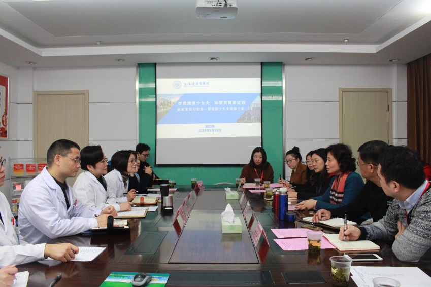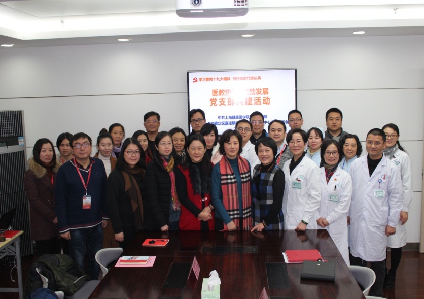 119日,教务党支部与嘉定镇街道社区卫生服务中心党支部开展了题为“学习贯彻十九大精神,争当新时代排头兵”的主题党日暨结对共建活动。副校长唐红梅、教务党支部书记张梅、附属嘉定区中心医院副院长陈颖敏、嘉定镇街道社区卫生服务中心党支部书记陶琼英,以及双方支部党员、民主党派人士30余名同志参加。
