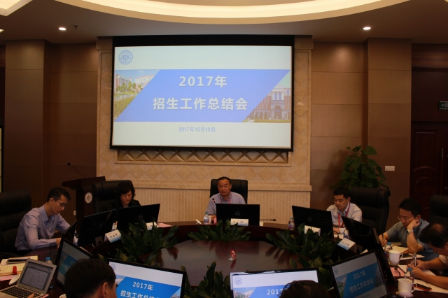 10月10日下午, 学校2017年招生工作总结会在北苑1号楼110会议室召开。会议就2017年招生工作进行了总结和分析,并对2018年招生工作进行了讨论和展望。校长黄钢、校党委副书记李明磊、副校长孔宪明、副校长许铁峰等校领导,招生工作小组成员,招生监管小组成员,纪检监察部门、宣传部、卫校主要负责同志,各二级学院招生宣传专员代表及相关人员参会。会议由唐红梅副校长主持。