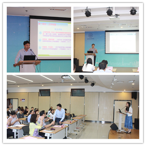 6月22日下午,为做好上海市普通高校语言文字工作达标评估,我校特邀上海语言文字工作委员会专职干部姜冠成和上海海事大学教务处处长张秋荣来我校做专题报告。会议由教务处副处长蒋淑敏主持,各职能部门、各学院、教学部负责人与语言文字工作联络人共计70余人参加了会议。