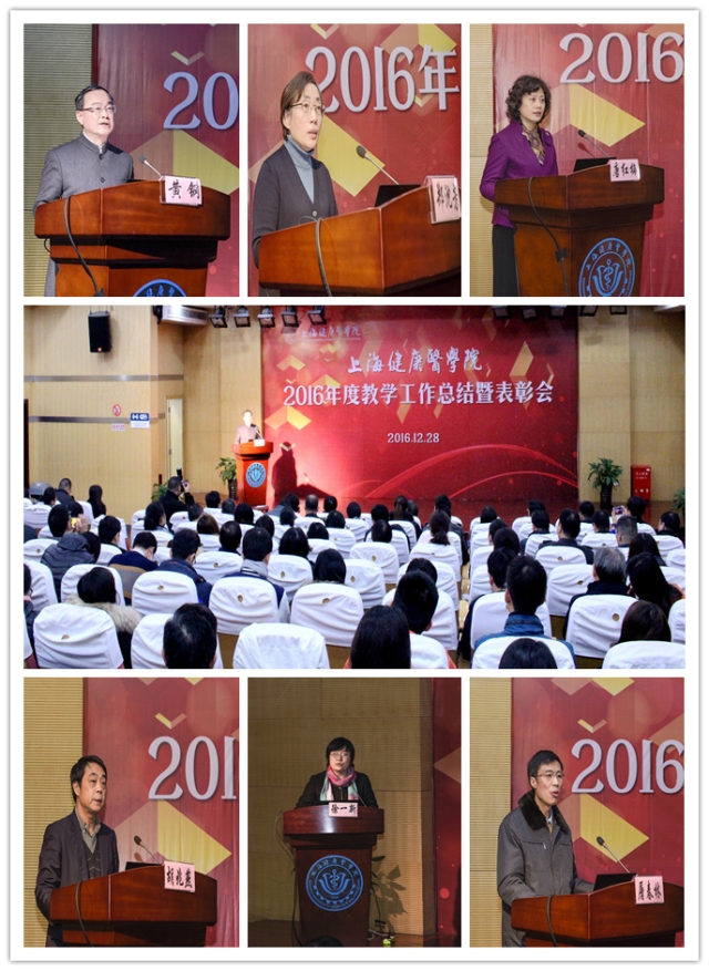 12月28日,我校2016年度教学工作总结暨表彰会在浦东校区北苑举行。校党委书记郑沈芳,校长黄钢,校党委副书记、纪委书记李明磊,副校长曹蓉蓉、唐红梅、于莹出席会议,学校相关职能部门负责人,各二级学院(部)党政负责人、教学秘书、教师代表,各附属医院教学院长、教学办主任,临床医学各学系主任、副主任、骨干教师及教学管理部门相关人员参会。会议由教务处处长张梅主持。