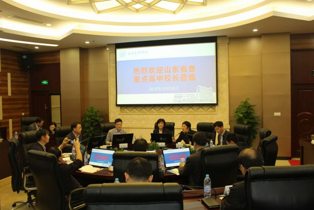 上午,首先进行了山东省重点高中校长见面会,会议由教务处洪寅峰副处长主持。于莹副校长代表学校对各位重点高中校长来访交流表示热烈欢迎,并介绍了上海健康医学院的历史、办学理念、专业特色、师资队伍和国际化合作等校情。