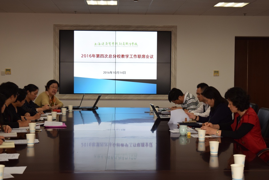会议首先通报了总分校教学管理“五统一”工作的开展情况,如上学期总分校联考质量分析、本学期总分校教学工作计划和转录播远程互动教室建设进展等内容。随后,教务处各相关科室负责人分别就本学期总分校联合期中教学质量检查、上海市“星光计划”第七届职业院校技能大赛学校初赛、上海市中等职业学校学生综合素质评价教务相关数据录入等工作进行了重点布置,招生科主任王居儒通报了2016年各分校中职、中高职贯通招生情况,也就明年的招生工作作了初步设想,各分校也在会上作了交流沟通。