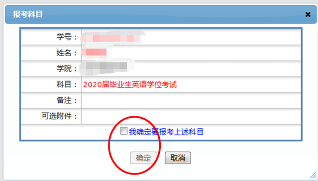 5.弹出提示框后,勾选“我确定要报考上述科目”,点击“确定”。