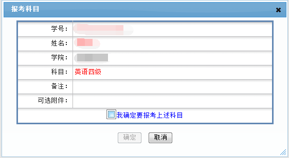 弹出提示框后,勾选“我确定要报考上述科目”,然后点确定