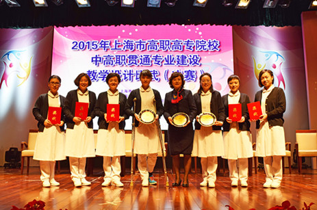 1月8日,2015年上海市高职高专院校中高职贯通专业建设教学设计比武(决赛)在上海交通大学医学院懿德楼隆重举行。经过激烈角逐,我校唐红梅副校长领衔的教学团队以417票的高票勇夺决赛团队一等奖,仁济医院消化内科许美护士长作为我校兼职教师获得高职组最佳说课老师奖。全市各中高职院校校长、专业主任、骨干教师500余人观摩。