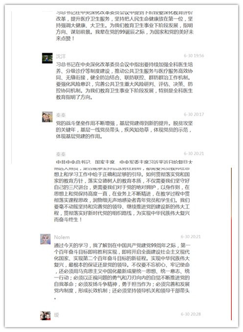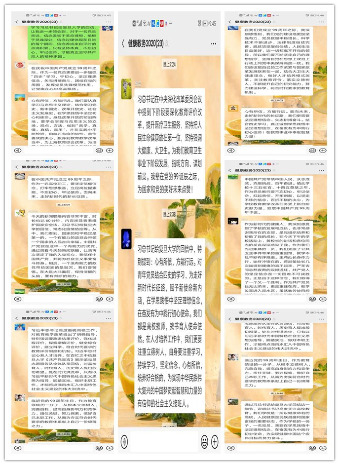 在这次新闻联播中,提到了习近平总书记近日给复旦大学《共产党宣言》展示馆党员志愿服务队全体队员的重要回信。习近平总书记的重要回信为我们进一步开展“四史”学习教育提供了重要遵循,对广大党员践行初心使命提出了新的要求。针对这一内容,支部党员展开了热议,支部书记王莉提到:“习近平总书记给复旦大学的回信中,特别提到:心有所信,方能行远。对青年党员结合四史的学习,为走好新时代长征路,赋予新使命新内涵,在学思践悟中坚定理想信念,在奋发有为中践行初心使命。我们都是高校教师,教书育人使命使然。在人才培养工作中,我们更要注重立德树人,自身要注重学习,持续学习,坚定信念,心有所信,培养好合格的,为实现中华民族伟大复兴的中国梦贡献智慧和力量的有信仰的社会主义接班人。”而党员们也深刻认识到:“习近平总书记高度重视高校工作,对教育教学改革提出了明确指导,特别强调要改进结果评价,强化过程评价,探索增值评价,健全综合评价,建立科学、符合时代要求的教育评价制度和机制。习近平总书记心系人才培养,在百忙之中给复旦大学《共产党宣言》展示馆党员志愿服务队全体队员回信,对高校育人、时代育人、历史育人提出殷切希望。处在时代洪流中,只有以习近平新时代中国特色社会主义思想为指导,脚踏实地,做好本职工作,才能将点滴雨水汇入中国特色社会主义建设的伟大洪流中。”