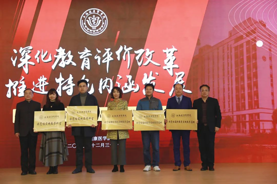 在全校师生、附属医院、教学医院、社区联盟等共同努力下,学校在教学改革、教师教学竞赛、学生学科技能竞赛、各类示范基地建设等方面均取得了丰硕成绩。与会校领导共同为2020年在教学改革中获奖师生代表颁发荣誉证书。