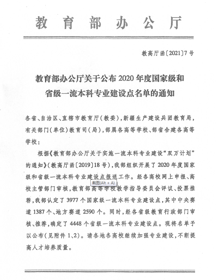 教育部实施一流本科专业建设“双万计划”,旨在深入落实全国教育大会和新时代全国高校本科教育工作会议精神,全面振兴本科教育,提升高校人才培养能力。从2019年开始分三年建设10000个左右国家级、10000个左右省级一流本科专业点。2019年认定了4054个国家级、6210个省级一流本科专业建设点,2020年认定了3977个国家级、4448个省级一流本科专业建设点。