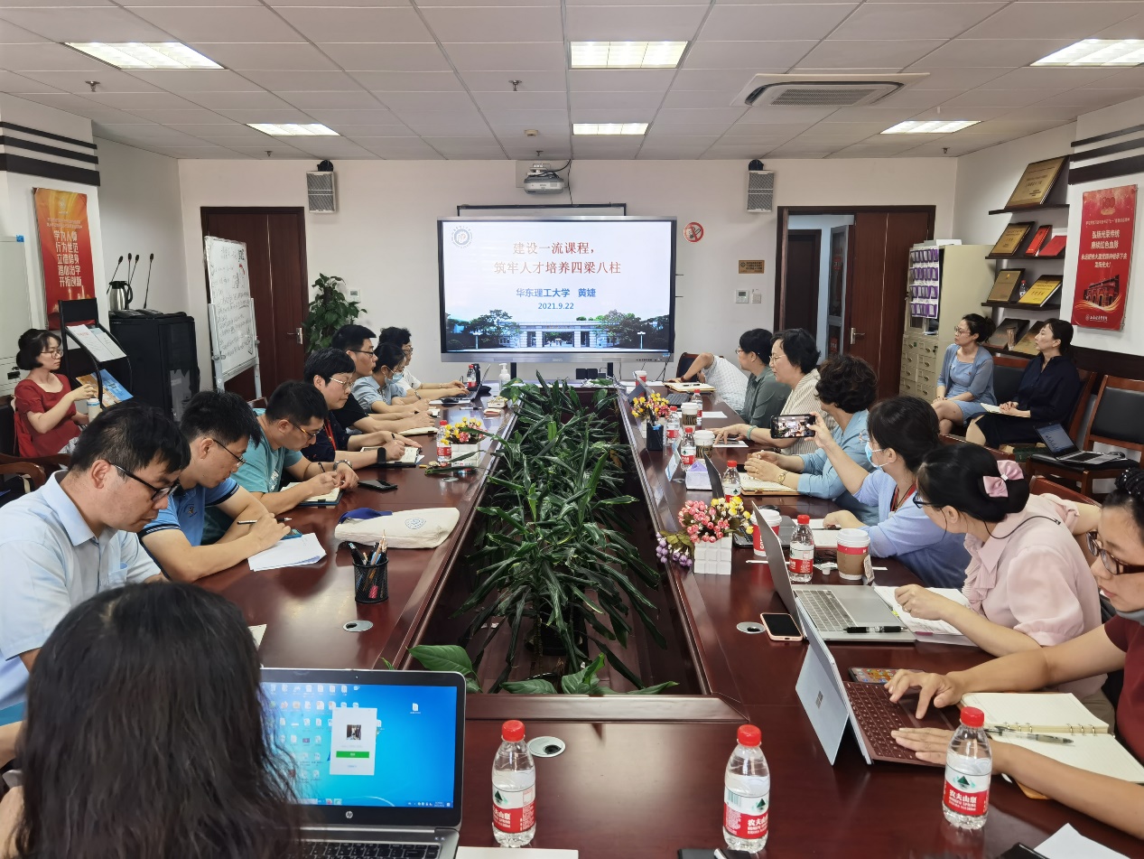 本次专题培训会特邀华东理工大学教务处处长黄婕教授,以《建设一流课程,筑牢人才培养四梁八柱》为题进行。她从新时代高等教育的要求,课程体系建设,一流课程建设等三个方面阐释了一流课程建设的目的、意义、要求、方法。第一,新时代高等教育的要求。黄婕教授从高等教育的功能、学科专业课程间的关系、目前一流专业建设的情况、一流课程建设的情况介绍了开展一流本科课程建设的目的和意义。第二,课程体系建设,夯实人才培养基础。培训以华东理工大学的课程体系建设为例,强调了课程在人才培养中,价值引领、知识传授和能力培养的重要作用。第三,一流课程建设,提高人才培养质量。培训分别结合不同的例子,以新的课程建设理念、课程教学团队的组建方法、课程建设要素、课程建设成效等清晰地讲解了一流课程的特征,深入浅出地阐释了一流课程建设从“传授范式”向“学习范式”的转变,深刻地解答了一流课程“高阶性、创新性、挑战度”的属性。最后,她还以课程负责人的角色,向各位老师传授了申报书填写的重点、难点、亮点和注意点。