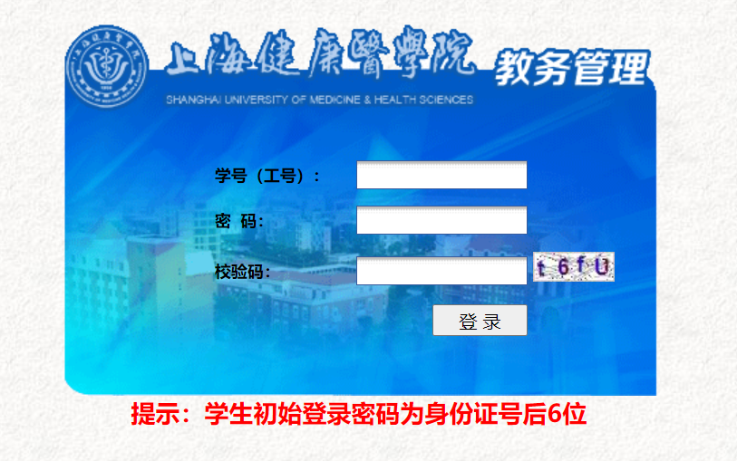 登录初始密码为身份证号后六位(注意:X请用大写)