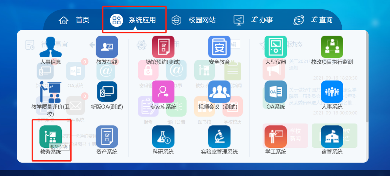 (3)选择“系统应用”,点击“教务系统”即可进入。