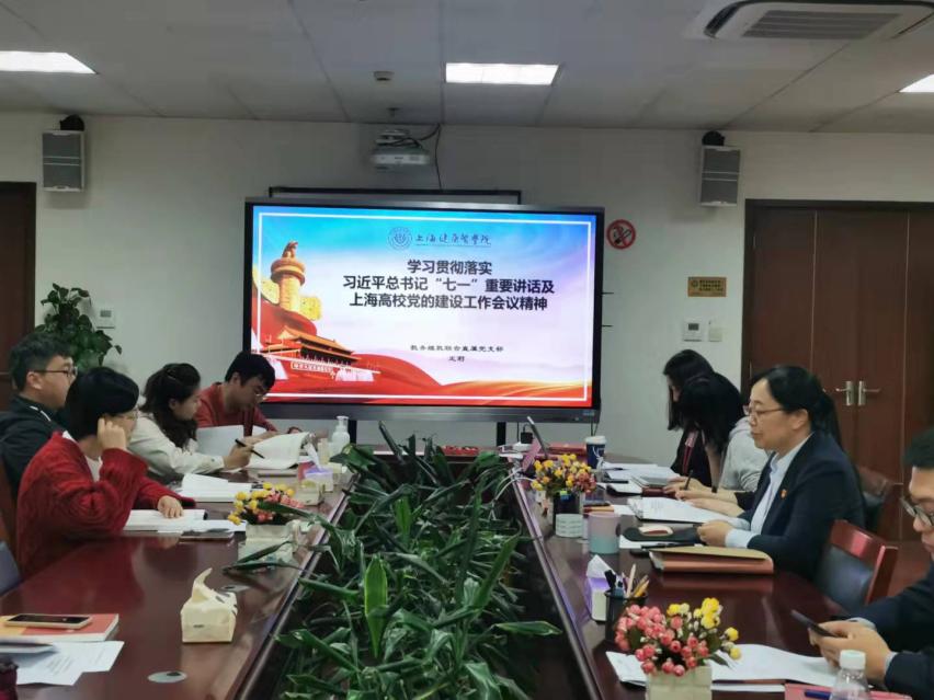 为推进党史学习教育进一步走深走实,10月20日下午,教务继教联合直属党支部在608会议室召开“学习贯彻落实习近平总书记‘七一’重要讲话及上海市高校党的建设工作会议精神”主题党日及党课,活动由支部书记王莉主持,教务继教联合直属党支部全体党员参加会议。
