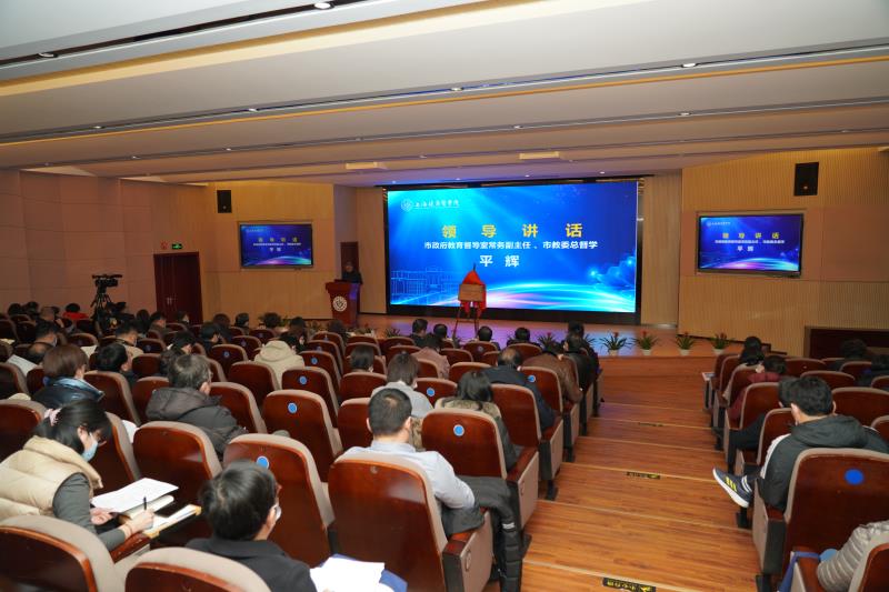 市教委总督学、市政府教育督导室常务副主任平辉,市教委副总督学、二级巡视员张慧,市教委督导室副主任傅建勤、戴勇等市教委领导,校党委书记郭永瑾,校党委副书记、校长吴韬,全体校领导,全校中层干部,评建办公室相关人员,合格评估专项工作组、教学单位联络员等出席。仪式由校党委副书记、副校长唐红梅主持。