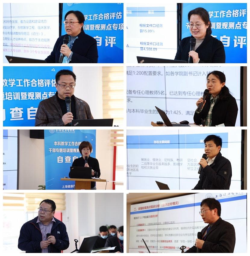 3月7日-8日,学校7个专项组、12个职能部门,16位汇报人根据各自负责的指标观测点,从基本要求及内涵解读、现状分析、目前存在的问题及原因分析、整改举措及未来发展以及观测点支撑目录材料及准备情况等多个方面开展自查自评汇报。山东交通学院李景芝教授,上海交通大学吴仁友教授、富冀枫教授,上海商学院熊平安教授,我校周进祝教授等组成专家团队以丰富的高校评估工作经验,对相关工作进行了有针对性地点评和指导。
