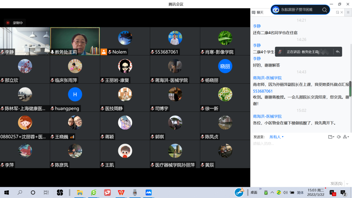 会议通报了目前校园准封闭管理期疫情防控情况和在线教学开展情况。随后,各二级学院分别就目前各专业实习情况,实习基地情况和后续计划等进行了交流和经验分享。南德红在各二级学院汇报的基础上,就上海部分医学类、理工类和其他类高校校园准封闭管理期采取的学生实习教学进行了介绍,并对接合格评估,就校园准封闭期间继续做好各类实习台账、梳理实习各类材料进行了交流。